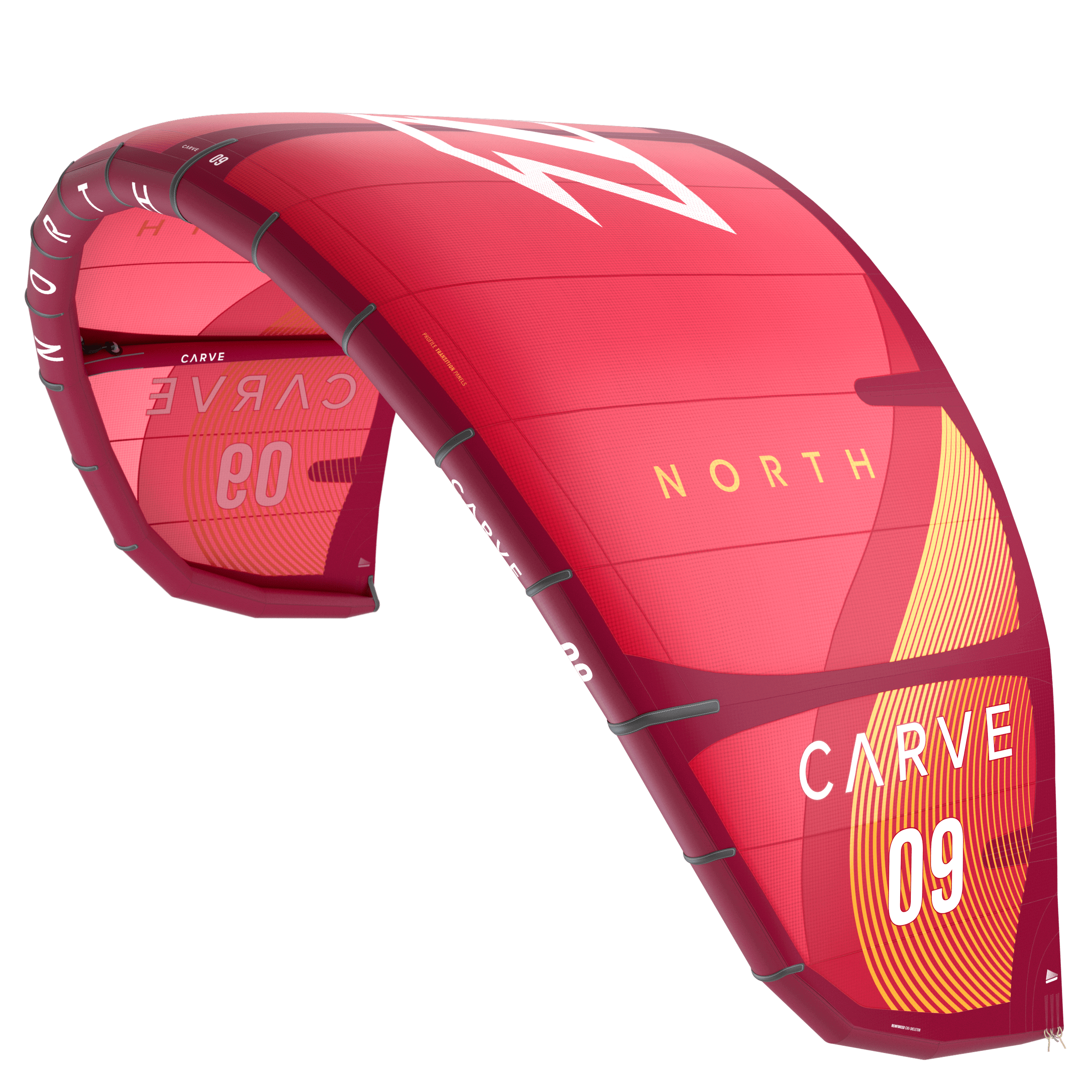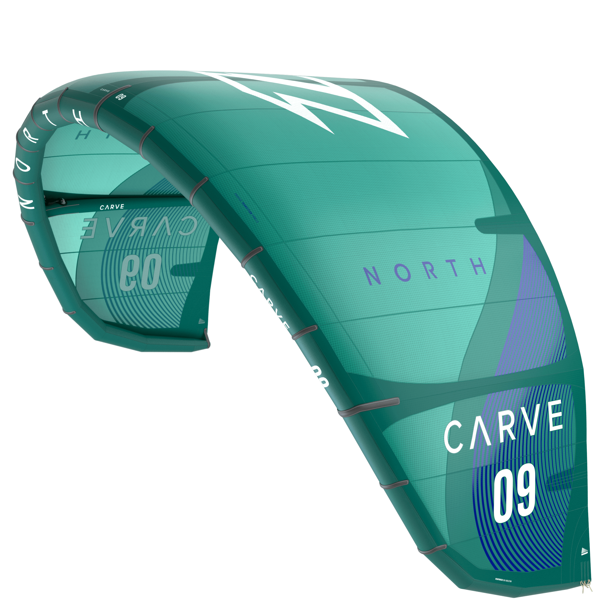 The North Carve continues to be a powerful, reactive and controllable surf/strapless freestyle kite. It’s responsive two-stage arc design enables tighter turns without excessive amounts of power. As the arc shape becomes narrower the kite uses less of its projected area, giving it a smaller turning radius for tighter turns, and less pull or power in turns.
