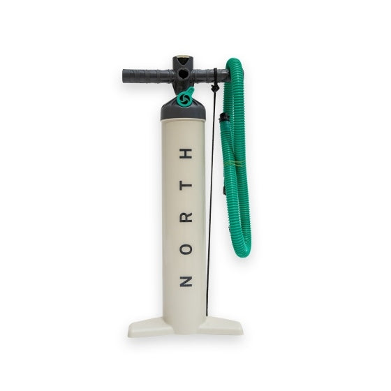 North Kiteboarding Double Action Kite Pump with tall body, high-airflow piston and single/double action switch for faster, easier inflation.