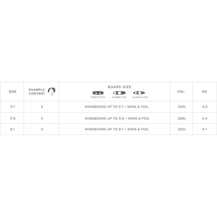 Mystic's Star Wingfoil Boardbag is perfect for travelling with your gear. It's a great looking boardbag to protect your valuable wing foil board, wing and foil parts. Available in a range of sizes, with or without wheels, and built with enough pad...